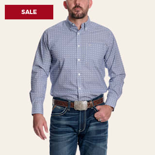 Ariat Men's Navy & Light Blue Geo Print Long Sleeve Shirt - Big & Tall