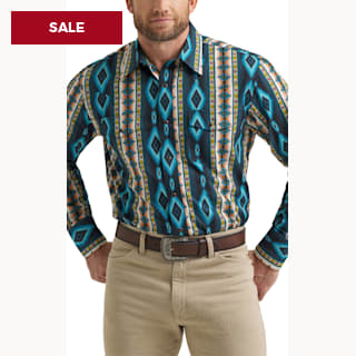 Wrangler George Strait Black Geo Print Long Sleeve Shirt - Big & Tall