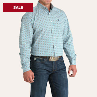 Cinch Men's Teal Diamond Geo Print Long Sleeve Western Shirt