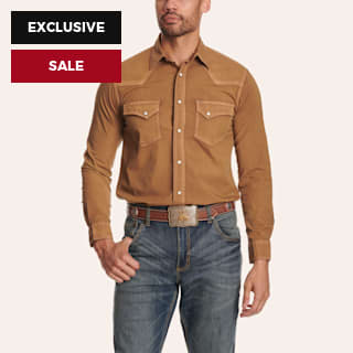 Rafter C Men's Solid Caramel Brown Stretch Western Shirt