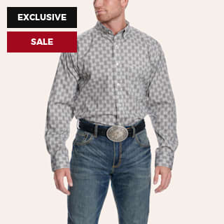 Rafter C Men's Gray Paisley Stretch Long Sleeve Western Shirt