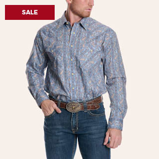 Rough Stock Men's Light Blue Paisley Print Western Shirt