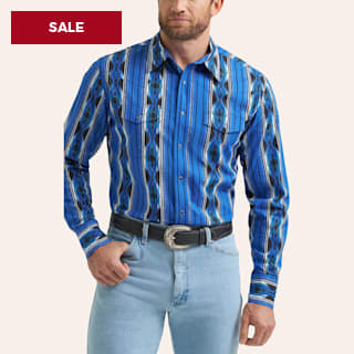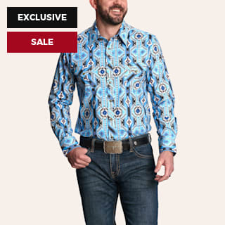 Panhandle Men’s Blue Aztec Print Western Shirt