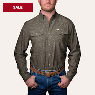 Rafter C Men's Solid Olive Green Western Shirt