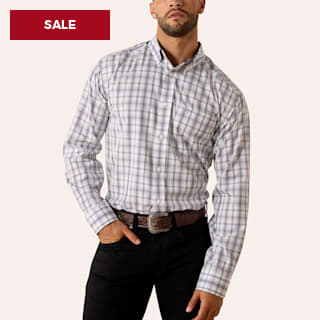 Ariat Men's Louie White Plaid Print Wrinkle Free Long Sleeve Shirt