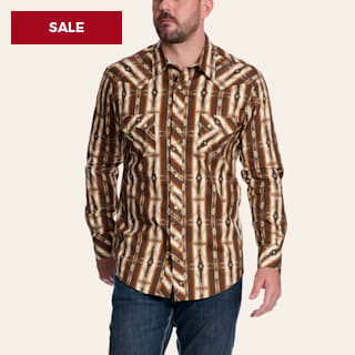 Rock & Roll Denim Men's Dark Brown Aztec Print Long Sleeve Pearl Snap Western Shirt
