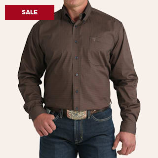 Cinch Men's Brown Houndstooth Print Stretch Long Sleeve Shirt