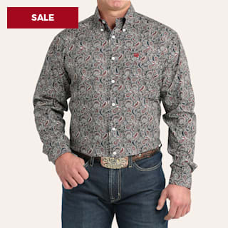 Cinch Men's Navy & Red Paisley Print Long Sleeve Shirt
