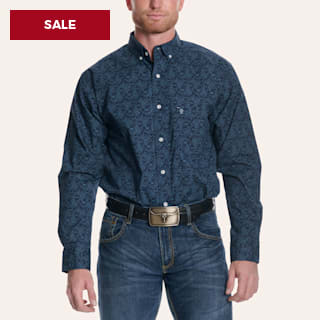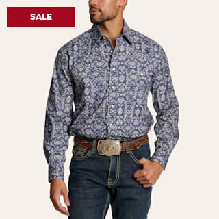 Rafter C Men’s Navy Wallpaper Print Long Sleeve Western Shirt