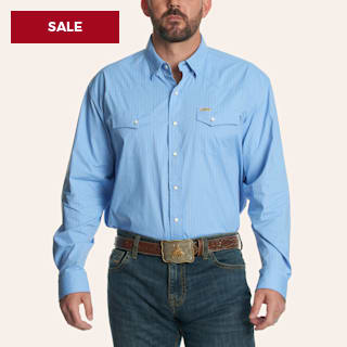 Rafter C Men's Sky Blue Pinstripe Print Pearl Snap Long Sleeve Western Shirt