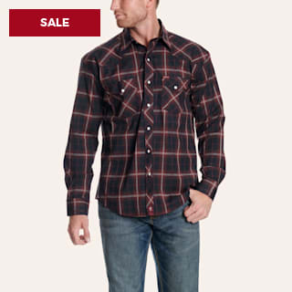 Rafter C Men's Black & Red Plaid Print Western Shirt