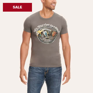 Red Dirt Hat Co. Men's Bad Bronc Gray Rock & Roll Buffalo Logo Graphic Short Sleeve T-Shirt