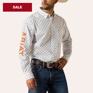 Ariat Men's Jericho White Medallion Print Team Logo Embroidered Long Sleeve Shirt