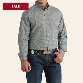 Cinch Men's Gray Medallion Geo Print Long Sleeve Shirt