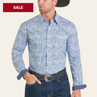 Rough Stock Men's Blue Paisley Print Western Shirt