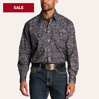 Rafter C Men's Black Paisley Print Western Shirt