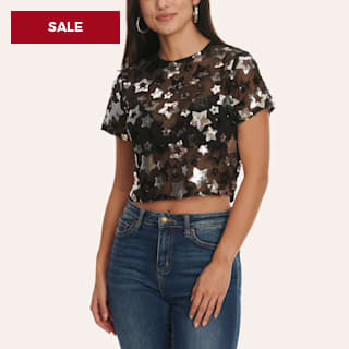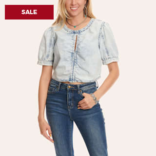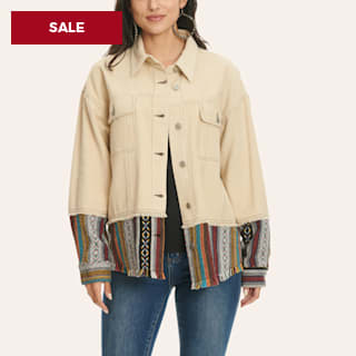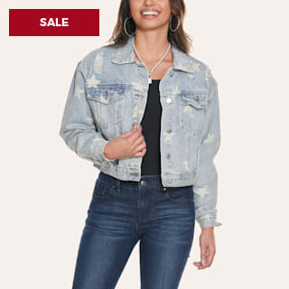 Blue B Women's Light Wash White Star Print Distressed Denim Jacket