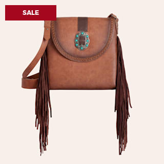 Catchfly Tan Buckle Fringed Crossbody Bag