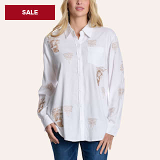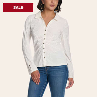 Cowgirl Hardware Women’s White Velvet Button Down Shirt