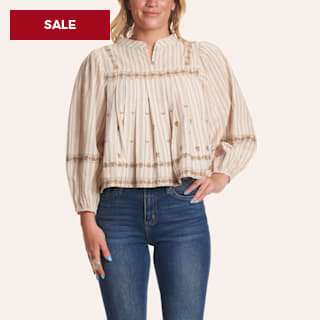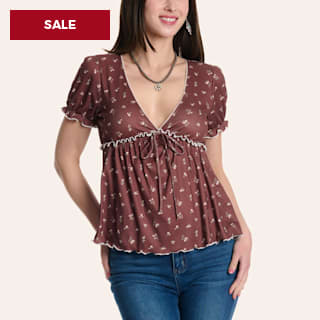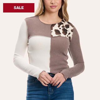 Moa Moa Women's Cream & Brown Cow Print Colorblock Knit Top