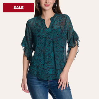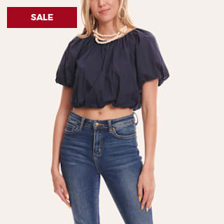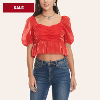 Day + Moon Women's Satin Red Short Puff Sleeve Ruffle Cropped Top