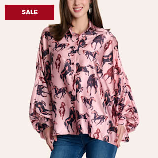 Beulah Women's Beige Cowhide Print Long Sleeve Satin Blouse