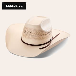 Rafter C Ivory and Tan Shantung X Vent Open Crown Straw Cowboy Hat