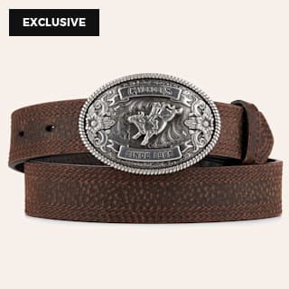 Cavender's Kids' Brown with Oval Bullrider Logo Buckle Western Belt