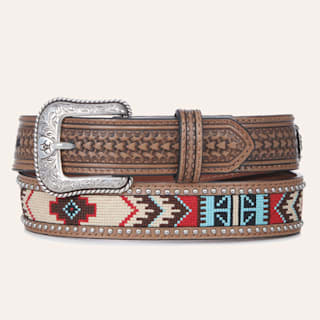 Ariat Boys' Brown with Aztec and Studs Basketweave Western Belt