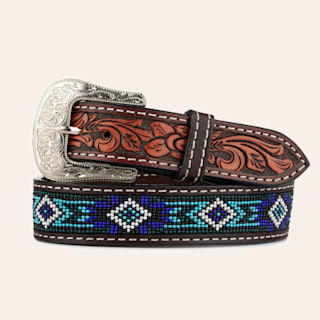 Twisted X Kid's Leather Belt with Blue and White Aztec Beading