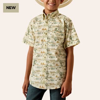 Rafter C Boys' Outdoor Khaki Cowboy Print Pearl Snap Western Shirt