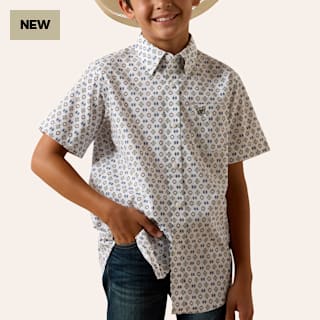 Wrangler Boys' Classic Blue & White Geo Print Shirt
