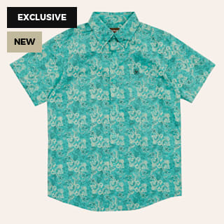 Wrangler Boys' Classic Blue & Green Geo Print Shirt