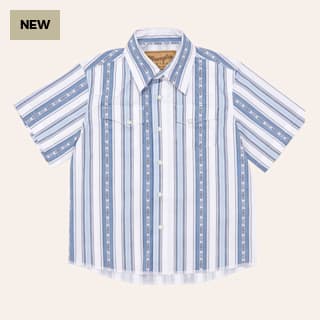 Wrangler Retro Boys' Blue & White Aztec Stripe Print Pearl Snap Western Shirt