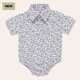 Rafter C Infant Boys' White & Blue Floral Print Pearl Snap Western Onesie