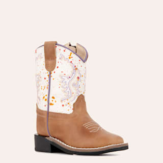 Old West Toddlers' Burnt Tan with Cream Embroidery Wide Square Toe Cowboy Boots
