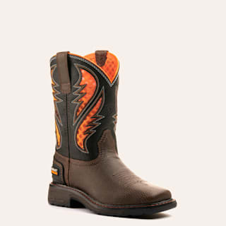Ariat Youth VentTEK Cocoa Brown and Black with Orange Vents Wide Square Toe Work Boots