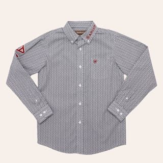 Ariat Boys' Black & Red Team Logo Geo Print Long Sleeve Shirt