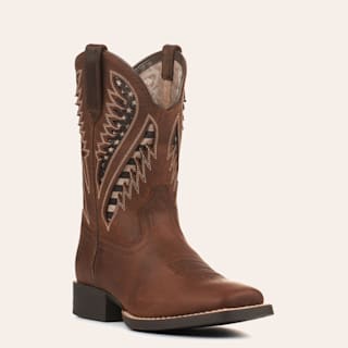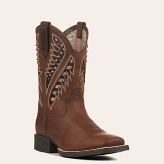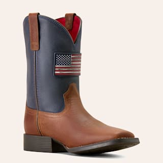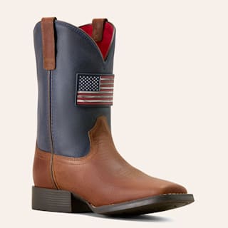 Ariat Youth Quickdraw Distressed Brown with Flag VentTEK Wide Square Toe Cowboy Boots