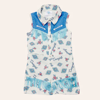 Shea Baby Toddler Girls' White & Turquoise Retro Cowgirl Print Pearl Snap Romper