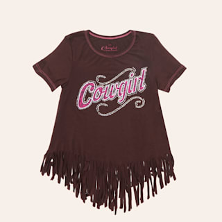 Cowgirl Hardware Girls' Chocolate Sassy Cowgirl Fringe Graphic Top
