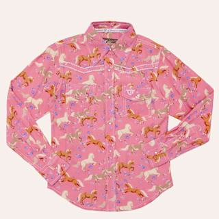 Cowgirl Hardware Toddler Girls' Pink Horse & Flowers Print Long Sleeve Pearl Snap Western Shirt