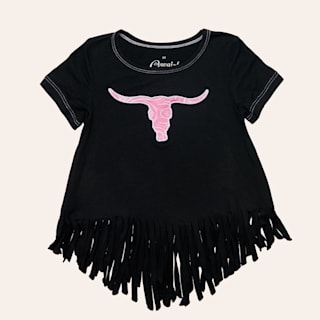 Cowgirl Hardware Girls' Black Floral Longhorn Embroidered Fringe Knit Top