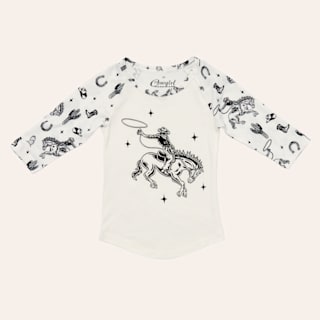 Cowgirl Hardware Toddler Girls' White Buck N Boots Print Raglan Sleeve Graphic T-Shirt