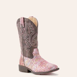 Roper Kids Pink Glitter Aztec Square Toe Cowboy Boot