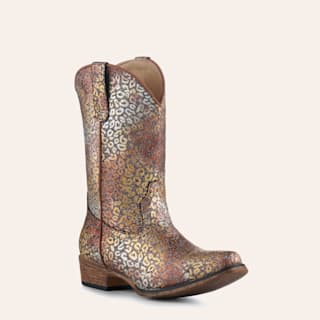 Roper Kids Riley Multi-Colored Leopard with Glitter Snip Toe Cowboy Boots
