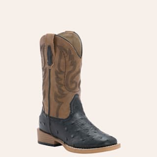 Roper Kids Black Ostrich Print with Tan Square Toe Cowboy Boot