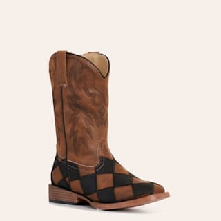 Roper Youth Brown & Black Checkered Wide Square Toe Cowboy Boots