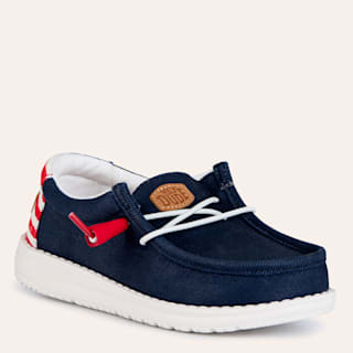 HEYDUDE Youth Boys' Wally Americana II Navy Blazer Moc Toe Shoes