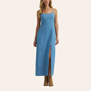 Wrangler Women's Light Wash Seamed Slit Denim Maxi Dress